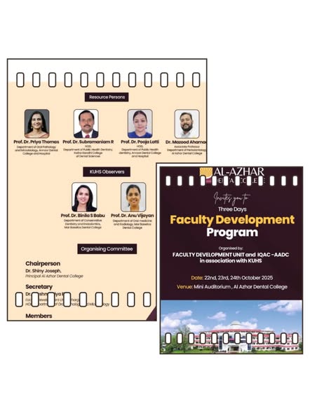 Dr. Pooja Latti, Professor and Head, Dept. Of Public Health Dentistry, was an invited Resource Faculty for the KUHS approved Faculty Development Program on Medical Education Technology at Al Azhar Dental College on 22nd October 2025.