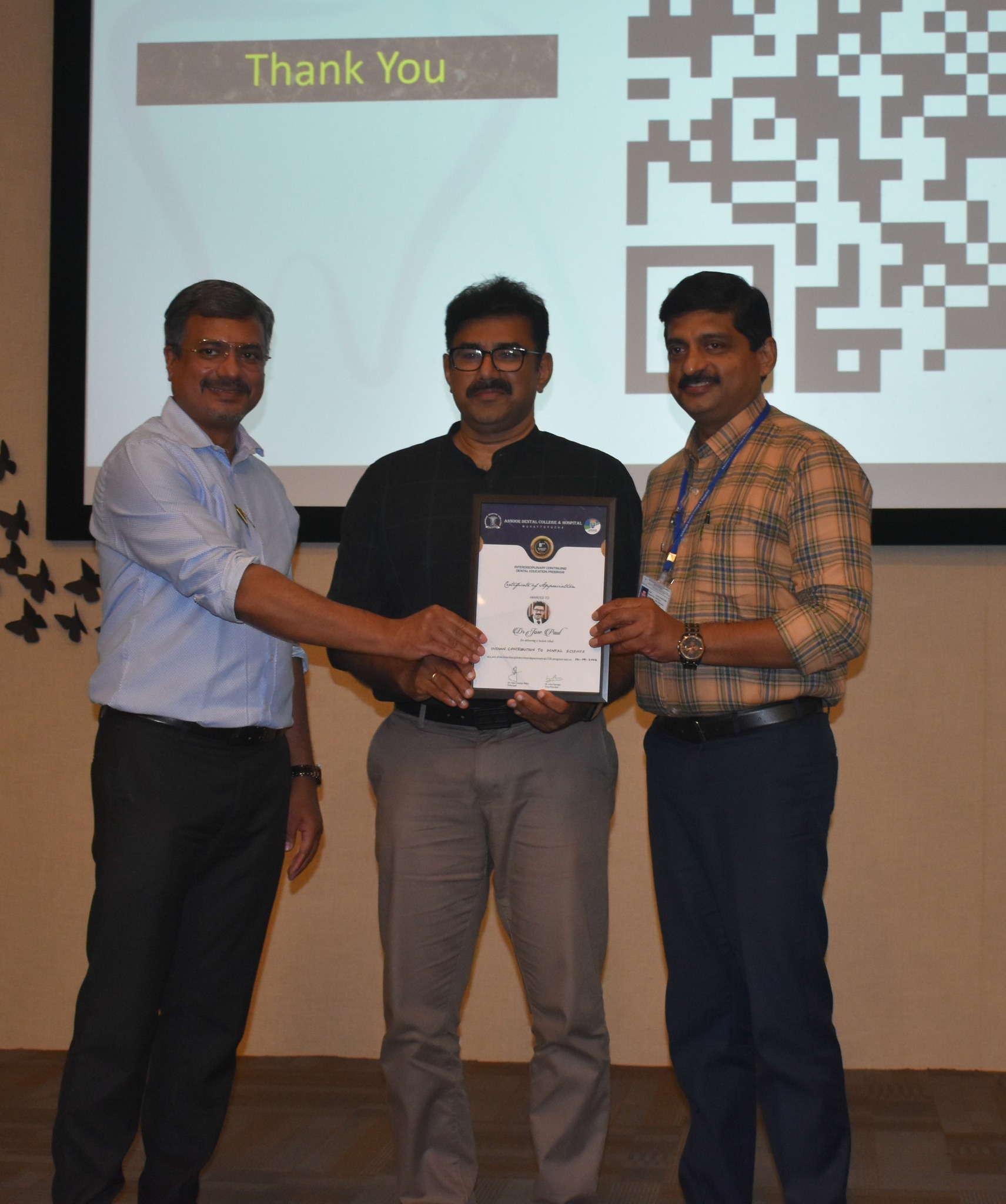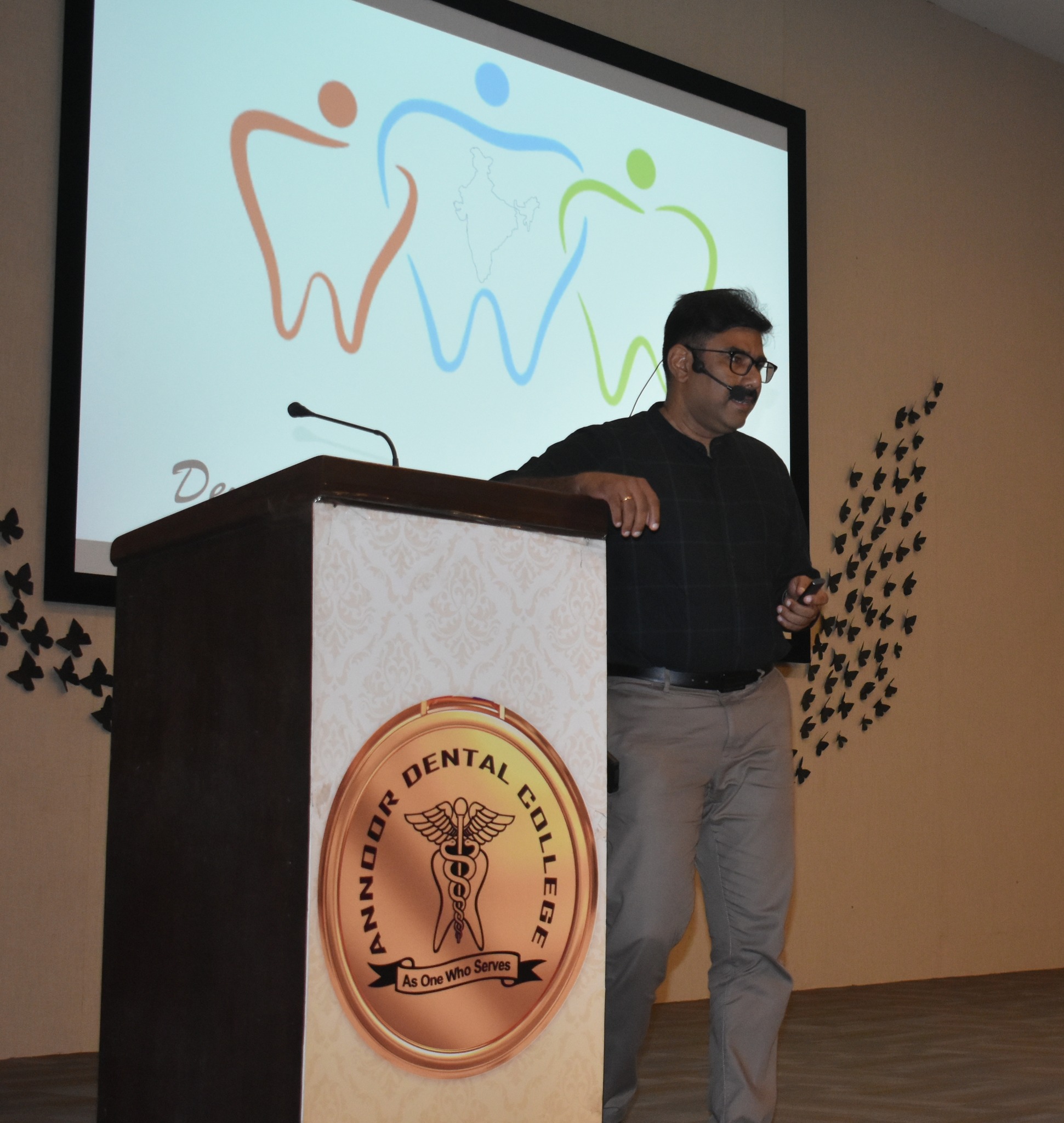 Dept. of Periodontics, Annoor Dental College & Hospital, Muvattupuzha organized the interdisciplinary CDE on the topic “INDIAN CONTRIBUTIONS TO DENTAL SCIENCES” by Dr. Jose Paul, Professor & Head, Dept. of Periodontics at 1 pm in college auditorium. The programme began with a prayer song, followed by welcome address by Dr. Senny Thomas (Professor, Dept. of Periodontics). Dr. Josey Mathew (Professor & Head, Dept. of Conservative Dentistry) and Dr. Joby Peter (Professor & Head, Dept. of Pedodontics) were the moderators for the session. Concluding Remarks were given by Dr. Giju George Baby (Principal, Annoor Dental College). Certificate of appreciation was given to the speaker by Prof. Dr. Cherian K.P & Dr. Deepu George handed the certificates to the moderators. The session was very informative and enlightening. There were total of 100 participants including Staffs, PGs, Interns and UG students. The session ended with Vote of thanks proposed by Dr. Sruthi K Nair.