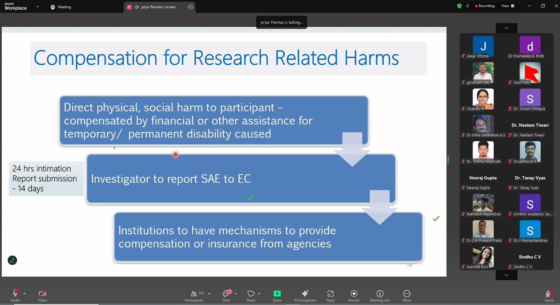 Dr. Priya delivered an insightful session on the ICMR Guidelines for Biomedical and Health Research Involving Human Participants, emphasizing ethical principles and best practices in clinical research.