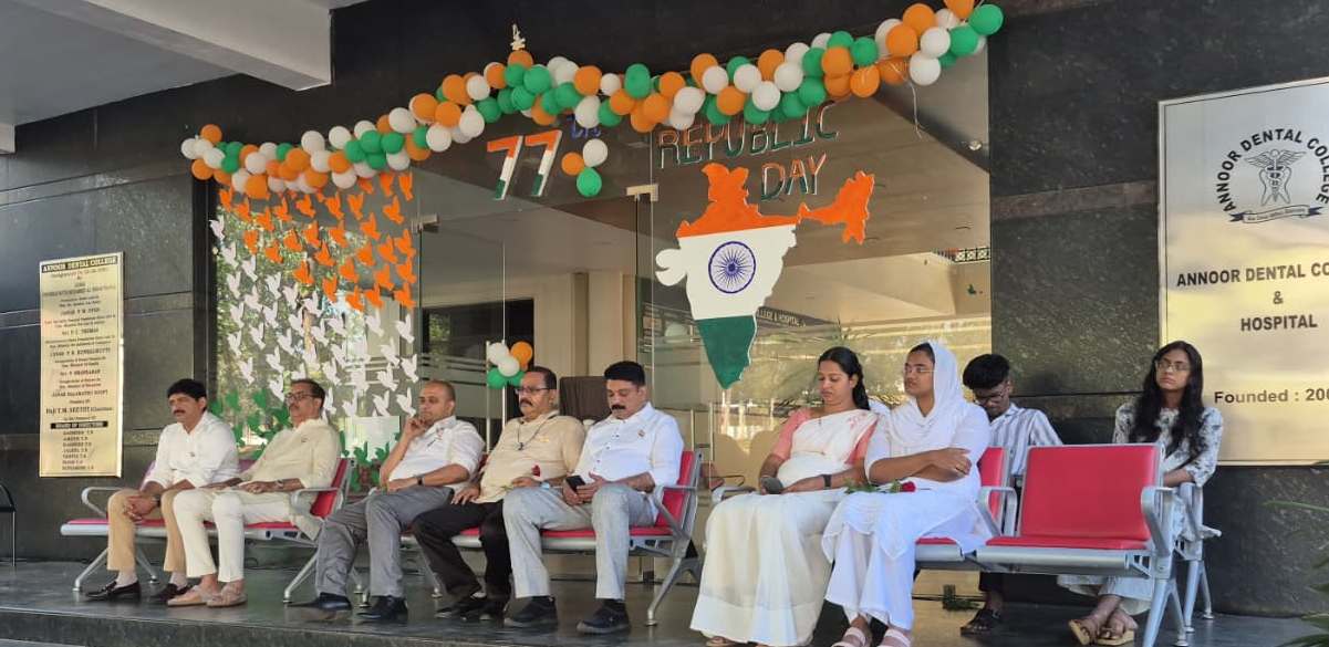 Annoor Dental College & Hospital, Muvattupuzha celebrated the 77th Republic Day of India on 26th January 2026 with great patriotism and reverence. The event was marked by the hoisting of the National Flag, followed by the rendition of the National Anthem, reminding us of the values enshrined in our Constitution.
