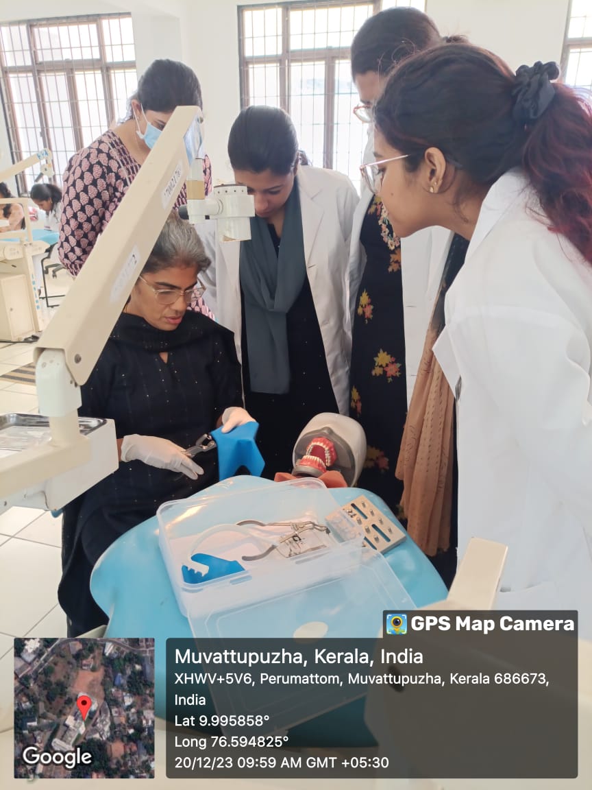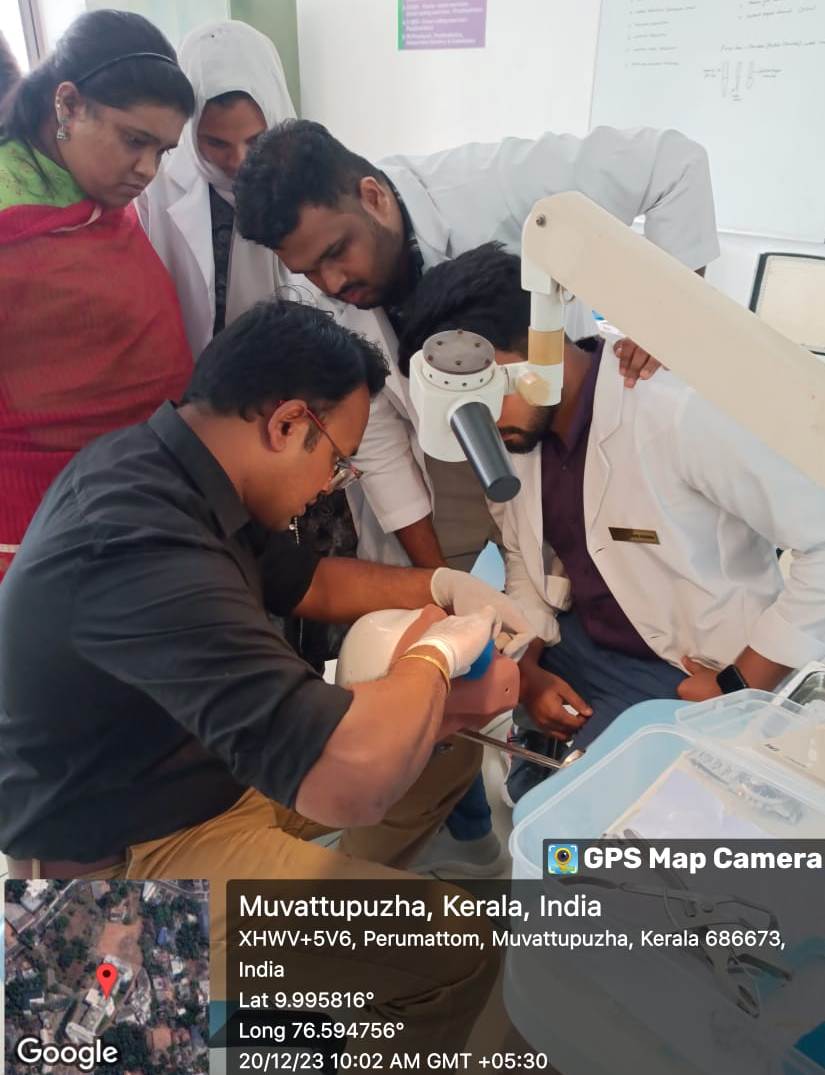 The program started with prayer song, followed by lectures on ‘ANATOMY OF ROOT CANALS AND ACCESS CAVITY PREPARATION’ by Dr. Josey Mathew (Professor & HOD, Dept. of Conservative Dentistry and Endodontics) and on ‘CLEANING AND SHAPING OF ROOT CANALS’ by Dr. Liza George (Professor, Dept. of Conservative Dentistry & Endodontics and Vice Principal, Annoor Dental College). Dr. Sinju Paul (Reader, Dept. of Conservative Dentistry and Endodontics) gave a lecture on ‘PAIN MANAGEMENT IN ENDODONTICS’ on 20th Dec, 2023. Participants were imparted hands-on training on access cavity preparation and cleaning and shaping of anteriors, premolars and molars using Protaper Gold rotary files. The program also included hands -on training on rubber dam isolation.