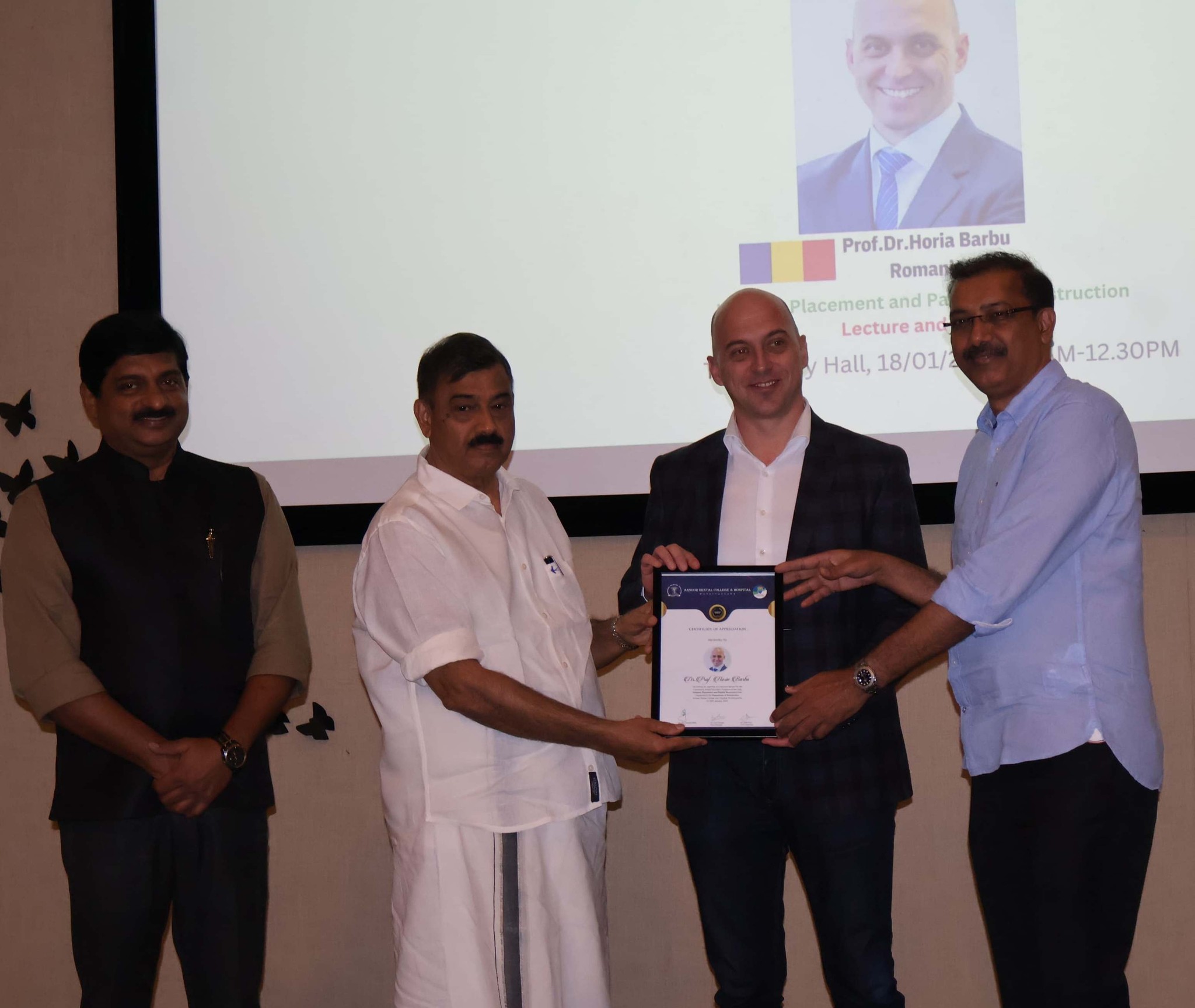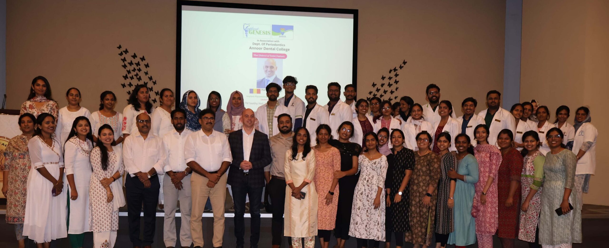 Implant Genesis and Annoor Dental College and Hospital, Muvattupuzha in association with Dept. of Periodontics conducted a lecture and demonstration session on the topic “IMPLANT PLACEMENT AND PAPILLA RECONSTRUCTION” on 18.01.2024 at auditorium. Speaker for the session was an international faculty Prof. Horia Barbu from Titu Maiorescu University, Bucharest Romania. The programme was a grand success. A total of 95 participants attended the program. We received an over whelming response from all the participants.