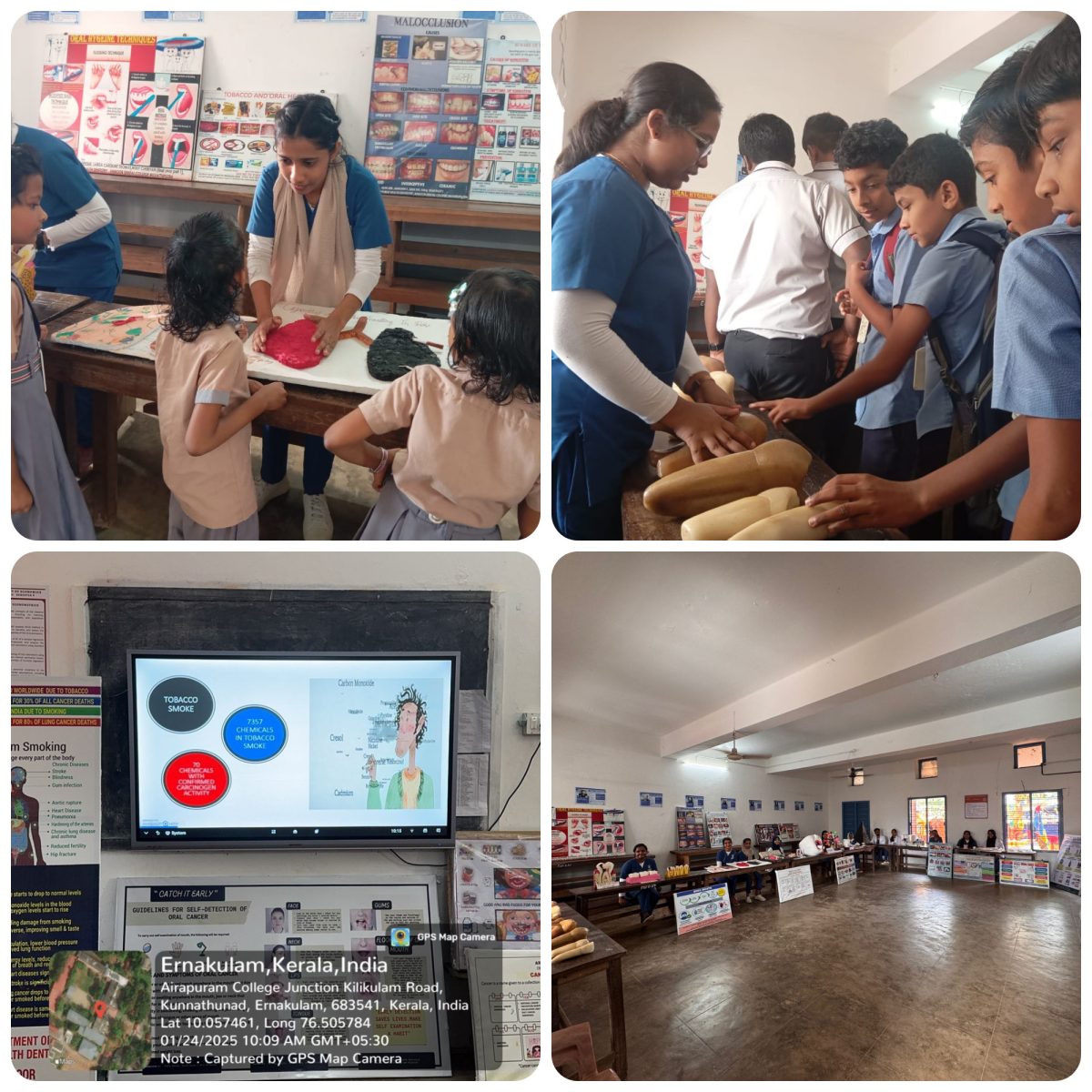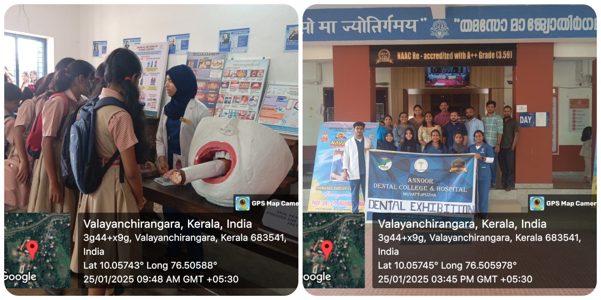A two-day Dental Exhibition was held at Sree Sankara Vidyapeetom College, Perumbavoor on January 24th and 25th, 2025. It was organized by Sree Sankara Vidyapeetom (SSV) College, Ayirapuram P.O., Valayanchirangra, in association with the Department of Public Health Dentistry, Annoor Dental College and Hospital, and various departments of SSV College, Perumbavoor as part of the SSV College Fest. The team actively participated in the event to raise awareness about oral health and provide educational insights into dentistry. As part of the exhibition, we displayed various models and posters related to dental care. Demonstrations on proper brushing and flossing techniques were conducted, complemented by a video presentation on oral hygiene practices. The college fest also featured several activities beyond the dental exhibition, including a book fest, departmental model displays by the Chemistry, Physics, Mathematics, and History departments, adventure games and a vibrant food fest that drew significant participation. Overall, the event was a valuable platform to interact with the community, promote oral health awareness, and showcase the importance of dentistry. The dental exhibition was widely appreciated and acknowledged by the organizers for its significant role in enhancing the success of the SSV College Fest.
