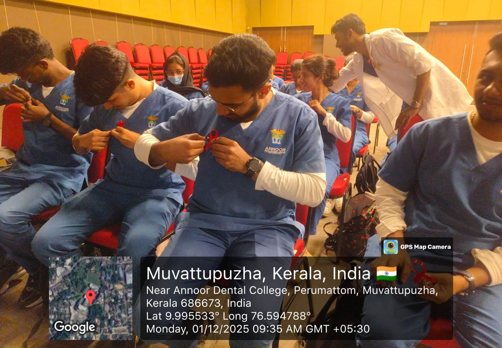 Annoor Dental College & Hospital observed World AIDS Day 2025 with a meaningful red ribbon awareness initiative organized by the YUGA Students Union. The day focused on spreading knowledge, breaking stigma, and showing compassion and solidarity with individuals living with HIV/AIDS.